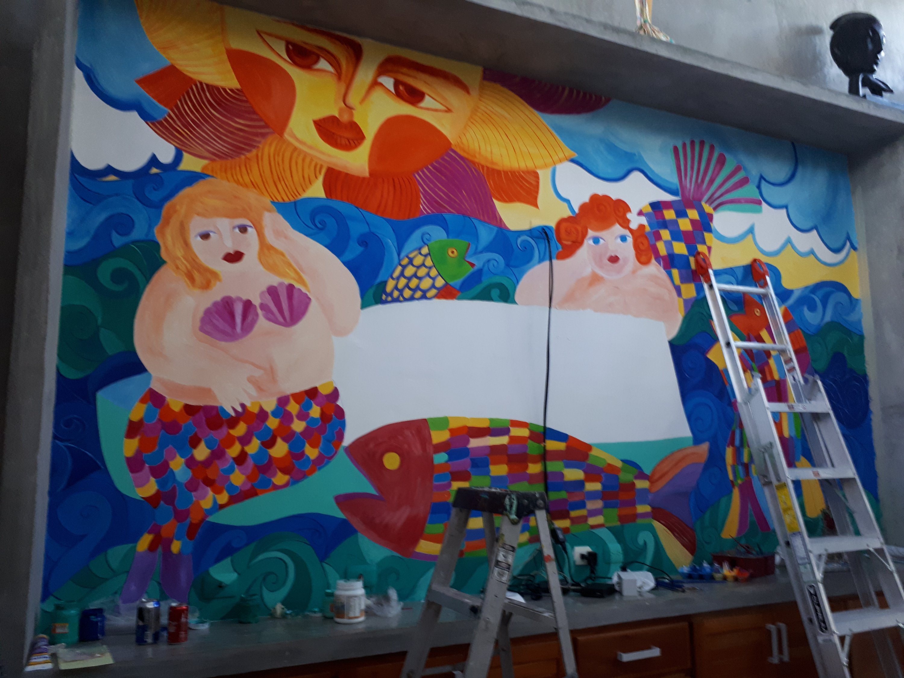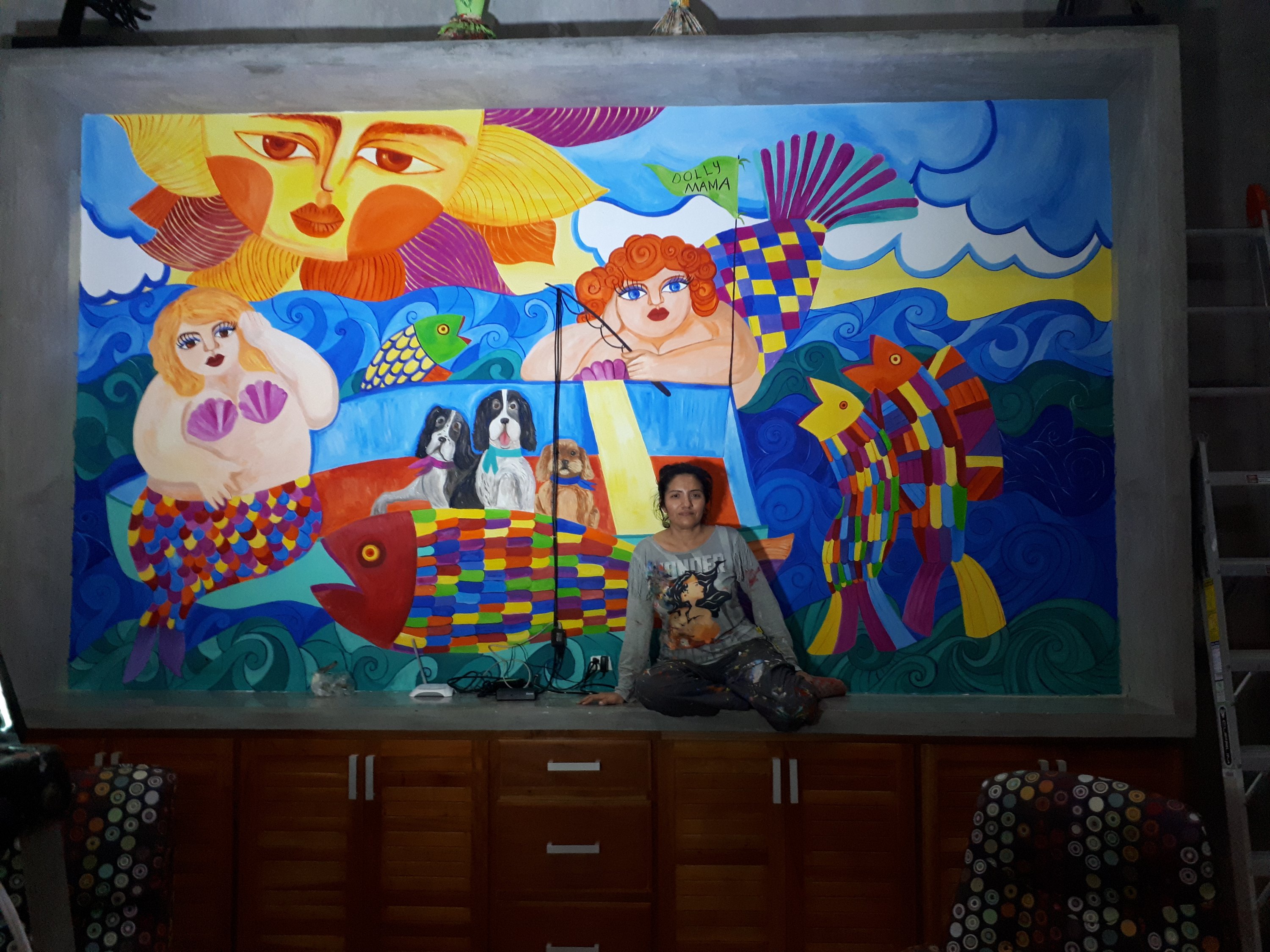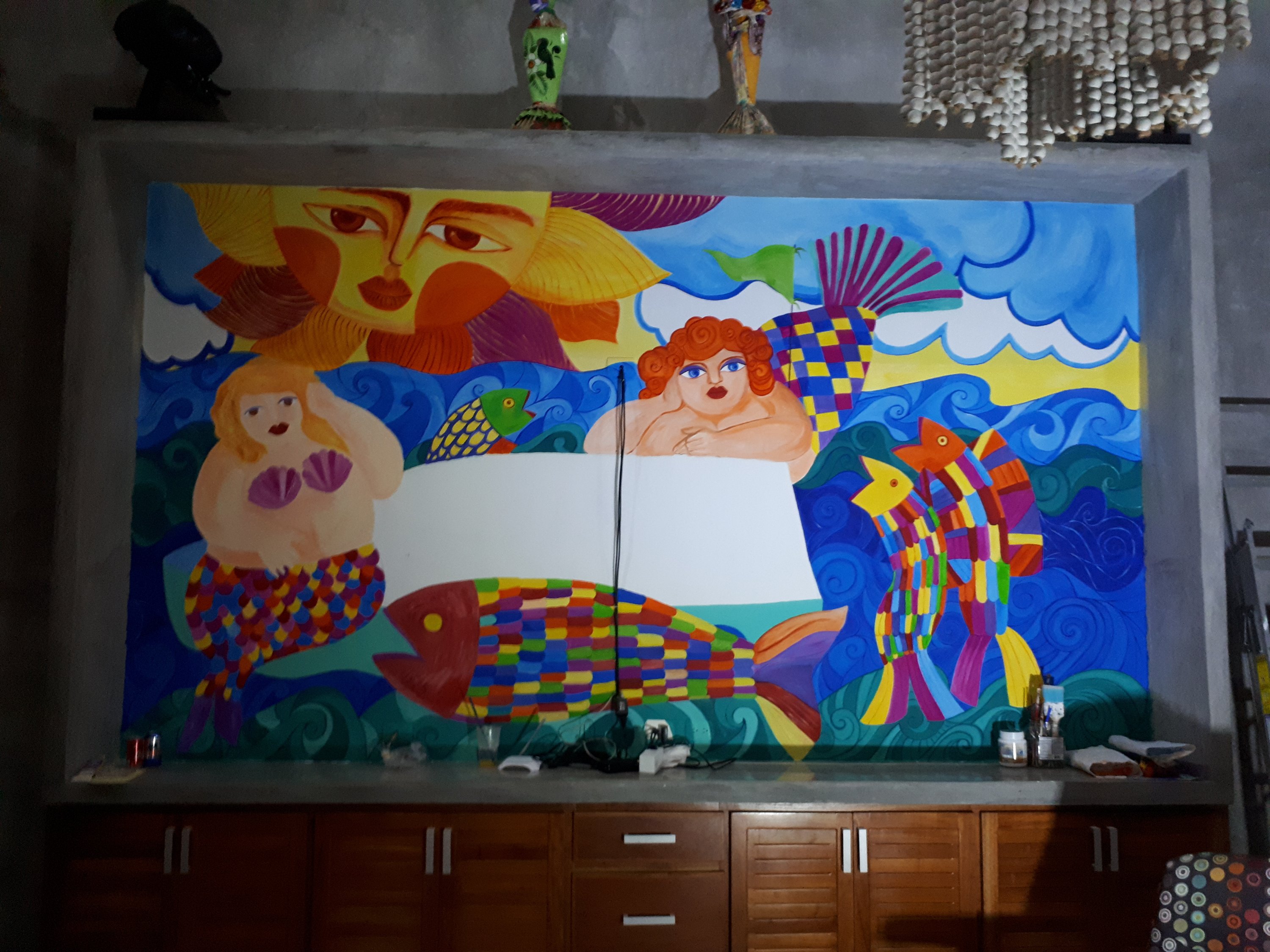 Located on the beautiful beach of Chelem, facing the beach this beautiful house is owned by Jodie & Keith Nesky and have managed to have a comfortable comfortable space with artistic pieces that have been carefully selected to have a colorful and Mexican atmosphere, and following this sequence of his sanctuary of rest we have created a mural with vibrant and fresh colors that fill the whole room turning it into a unique and original artistic piece.