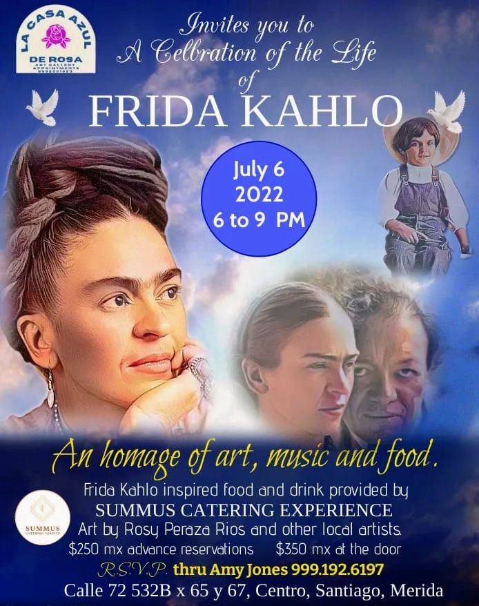 Nos acompañarán también dos atuendos de JuliRoss diseñadoras mexicanas inspirados en los trajes que portaba nuestra artista amada, y lo acompañaremos con el exquisito toque de Summus Catering Service les invitamos a seguir este blog de la escritora Jeanine Kitchel donde encontrarán un artículo sobre Frída Kahlo https://jeaninekitchel.blogspot.com/2022/01/how-san-francisco-ignited-right-stuff.html